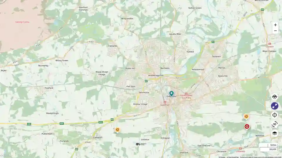 Guildford sits on the A3 trunk road, one of the main routes linking London with the south coast.